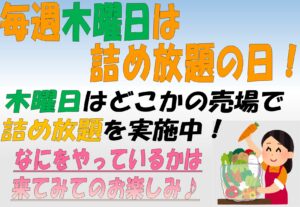 毎週木曜日はどこかの売場で必ず詰め放題を開催しております。