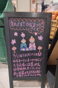 各売場にひなまつりにまつわるなぞなぞボードを設置致します。