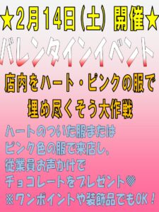 内容は、ハートのついた服またはピンク色の服で来店し、