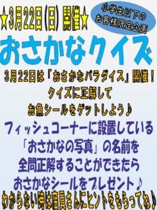 🐟3月22日(日) 開催🐟 おさかなクイズ🎵